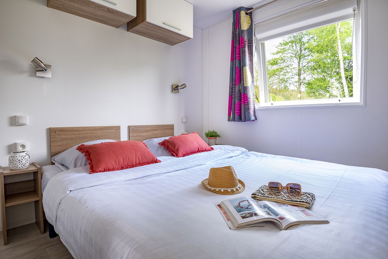 Cottage Savannah is een lichte en gezellige stacaravan van 30 m², ideaal voor koppels of kleine gezinnen. Het biedt plaats aan maximaal 4 gasten met 2 slaapkamers, 1 badkamer, een televisie en huisdiervriendelijke faciliteiten. Geniet van ontspannende momenten op het privéterras onder de dennen of verzamel binnen in de comfortabele woonruimte voor een maaltijd of gezelschapsspel.