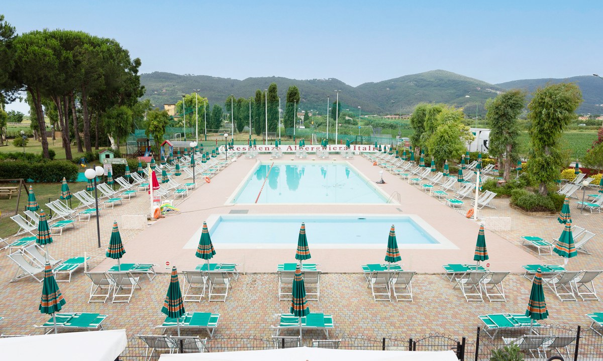 Résidence Luni Mare in Luni.Ruim zwembad met kinderbad en ligstoelen. Strand op slechts 1,5 km. kleinschalig in een rustige omgeving.