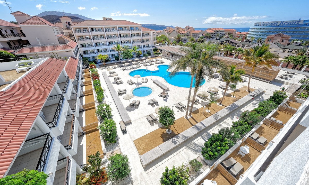 Hotel Parque La Paz in Playa de Las Américas.Vlakbij de stranden Playa de Las Vistas en Playa del Camison. Groot zwembad met ligbedden, parasols en zitjes. Wandel langs de promenade.